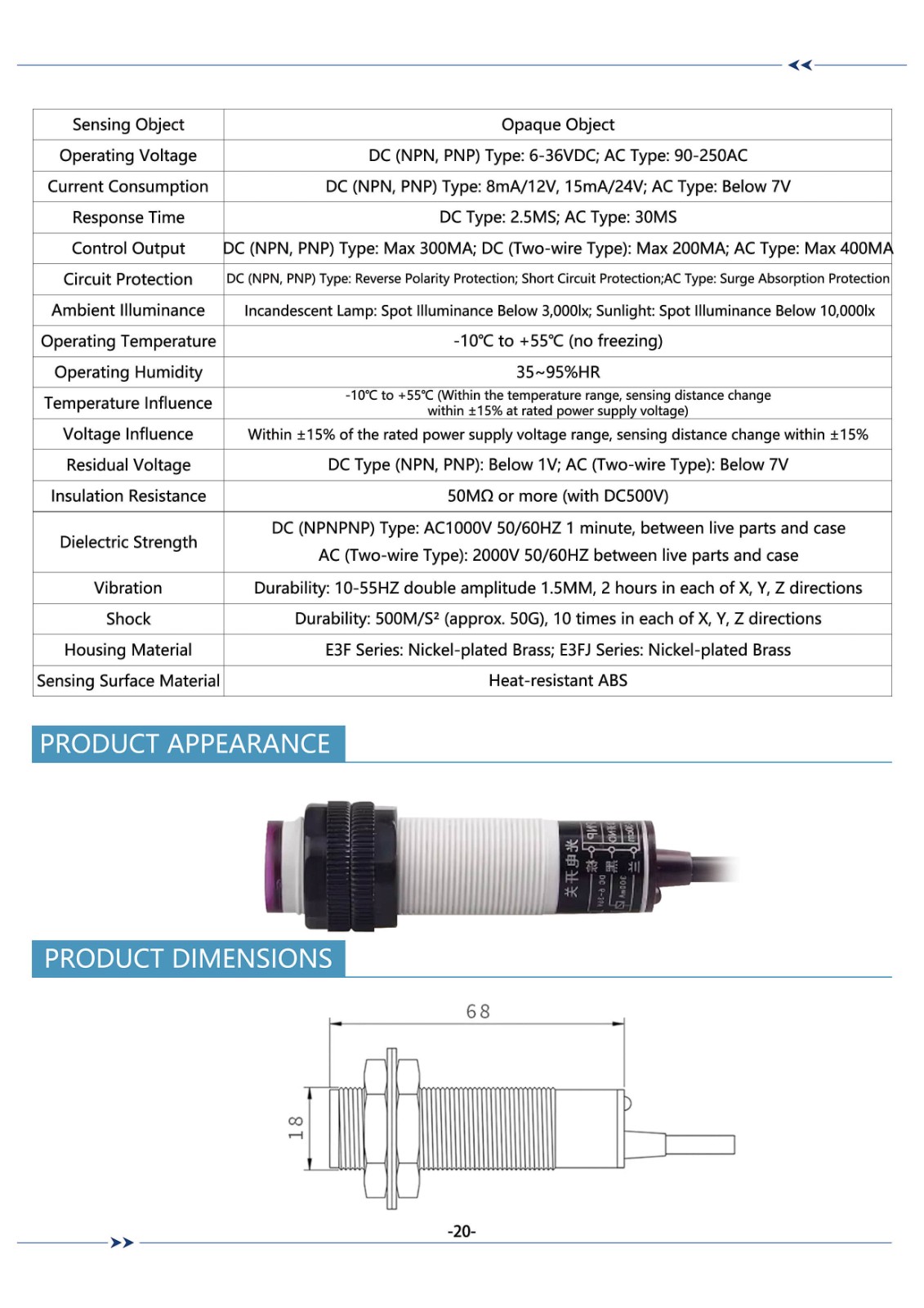 E3F Series Photoelectric SensorE3F Series Photoelectric Sensor