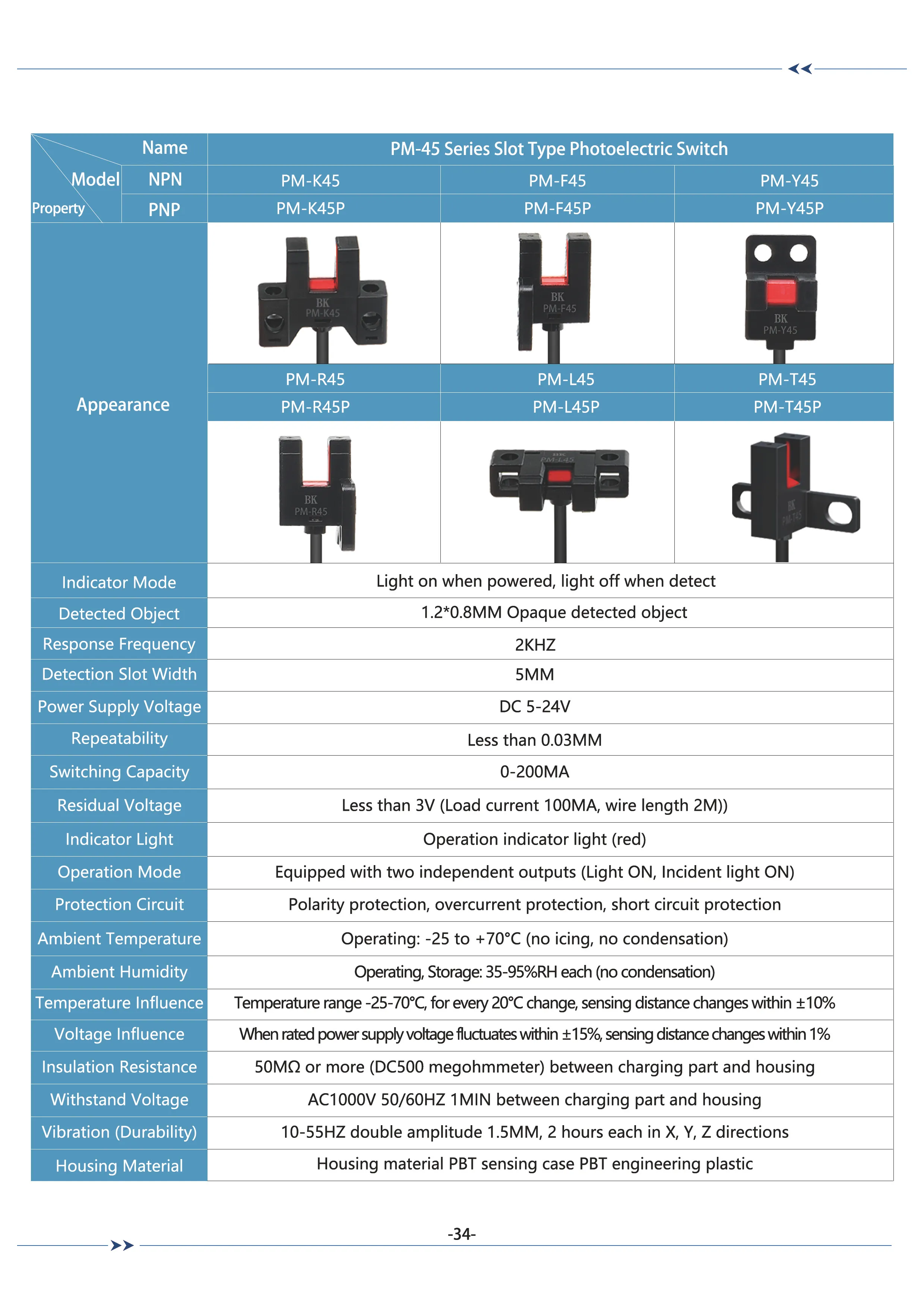 PM-45 Series Slot Type Photoelectric SwitchPM-45 Series Slot Type Photoelectric Switch